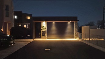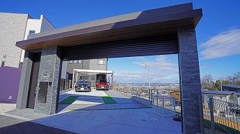 天空のウッドデッキの空撮と電動シャッターの開閉動画(夜&昼ヴァージョン)です。