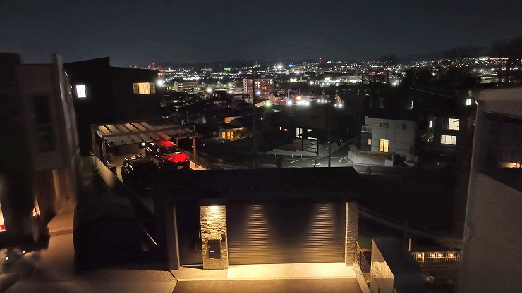 ドローンでの上空からの画像と,敷地から見える都市の夜景です。