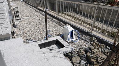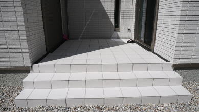 子世帯は広い玄関ポーチを利用し ステップの一部に立水栓を設置しました。