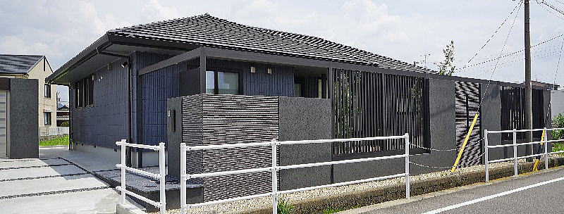 平屋&寄棟ヘーベルハウス(外壁メテオブルー)の貴重な外観の