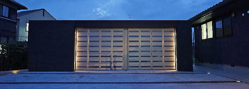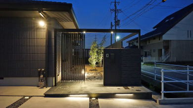 スリット照明を設置して開閉する時にも際立つ存在感にしました。