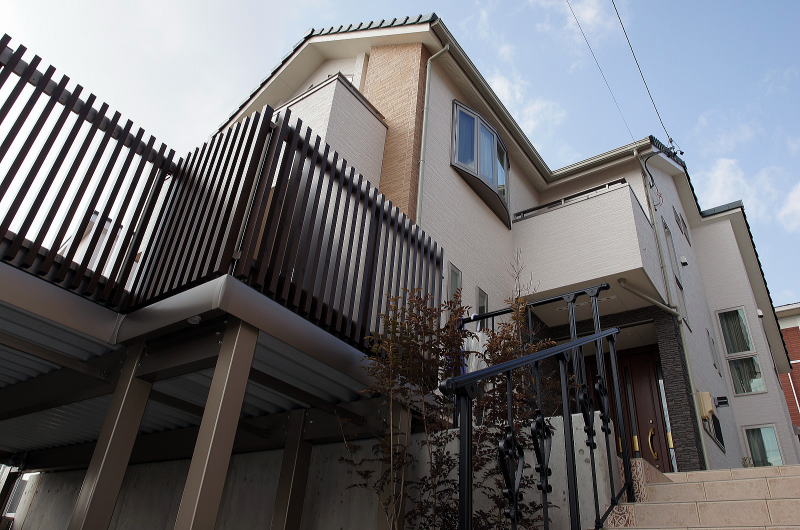 空間を有効活用と共に、木目調アルミの縦格子フェンス仕様なので、外構に高級感とナチュラル感が生まれました。