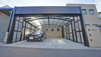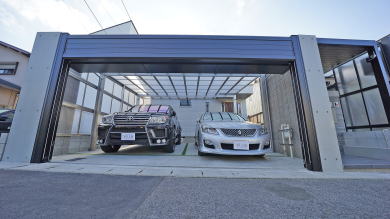 親世帯側は少しでも車庫内に埃等を入れないようにするためフルクローズ仕様になっています。