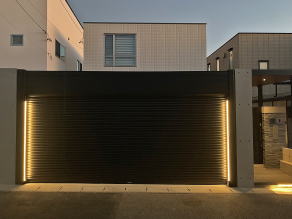 子世帯側はシャッターの側面にスリット照明を埋め込んで