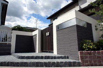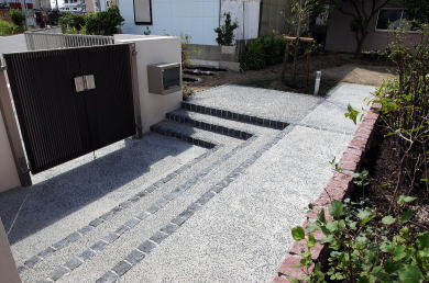 それをすべて使用して、和風色を色濃く出した和モダンというより、”和風モダン”という言葉が似合う外構です。