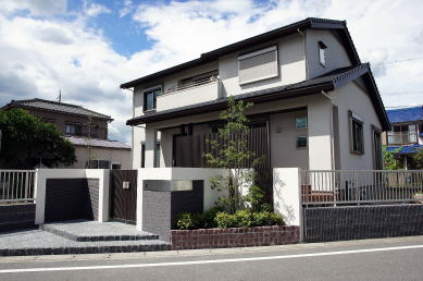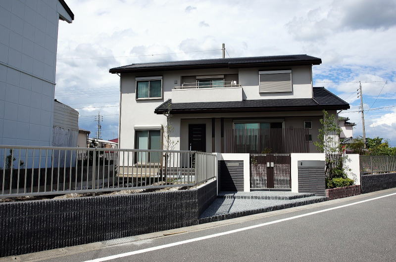 和風色を強めに残した、住友林業の建物の和風モダンなセミクローズ外構